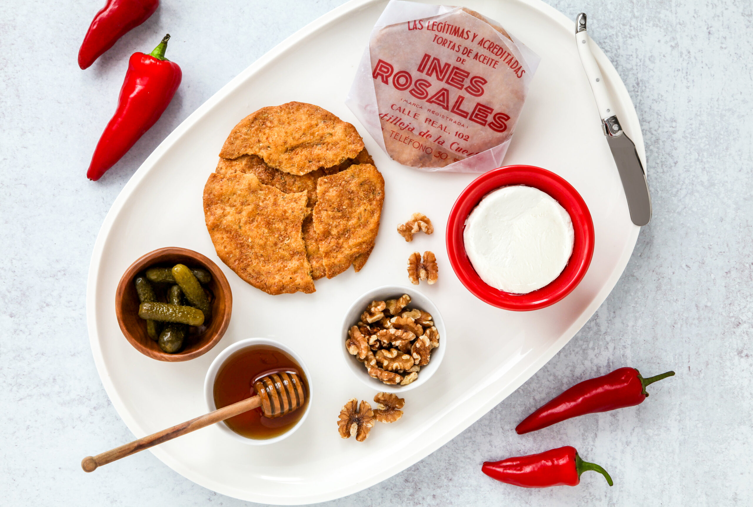 Inés Rosales Olive Oil Tortas have been a traditional snack throughout Spain. Hailing from Andalucía, they are made with the finest extra virgin olive oil and are baked with anise seeds, delicious with savory foods like cheese and pâtés.. They also are an ideal complement to your tea or coffee.